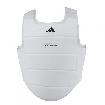 Il corpetto adidas per karate è omologato WKF con imbottitura in schiuma, protezione anteriore e laterale. Le taglie vanno dalla XS alla XXL e sono regolabili.